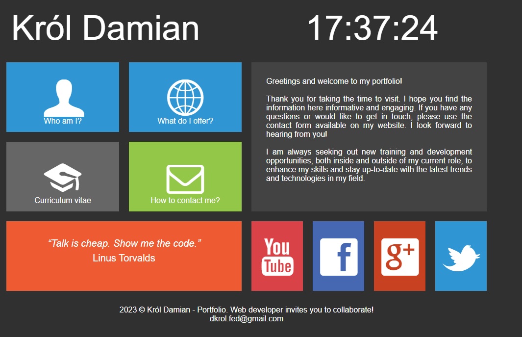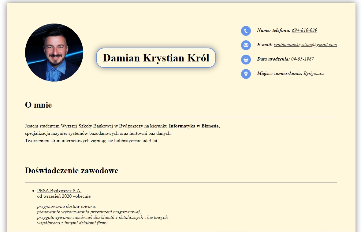 My name is Damian and I am a Business Informatics student at WSB in Bydgoszcz. I specialize in both User Interface Design and programming, using my expertise to create visually appealing and user-friendly websites. With 3 years of hobbyist experience in web design, I have developed a strong portfolio that showcases my ability to create clean, modern designs optimized for all devices. I am a passionate problem-solver and relish the opportunity to tackle design challenges. I am continuously seeking new training and development opportunities to improve my skills and stay up to date with the latest trends and technologies in my field.